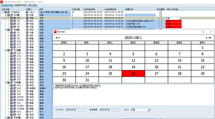 项目经理调用模板,快速形成项目计划,维护项目资源时,智能显示项目任务冲突,及时调整任务责任人。