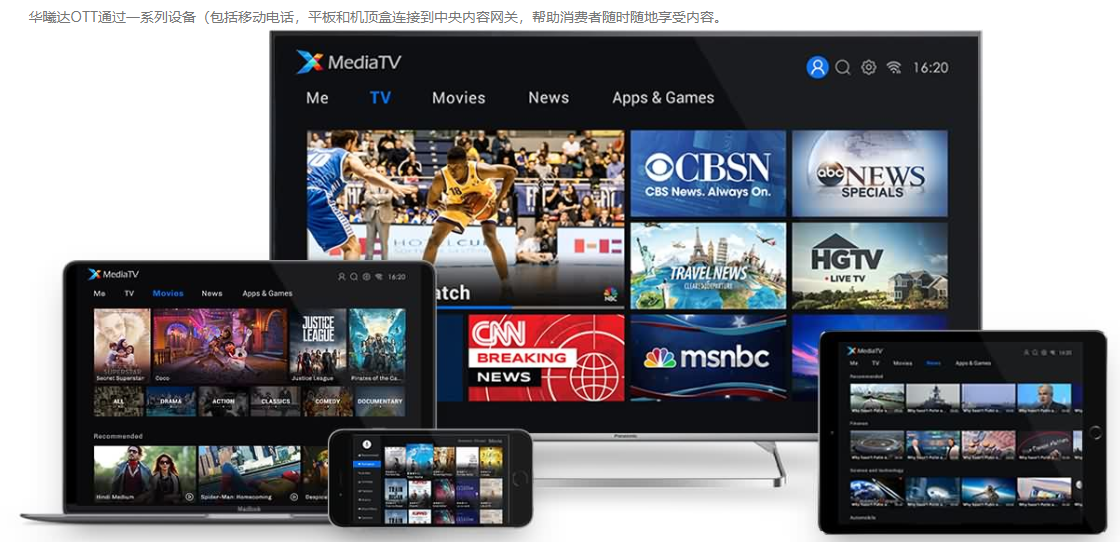 公司坚持“平台+智能终端+云服务”的发展战略,致力于智慧家庭Smart Home和数字媒体Digital Media领域的以数字媒体技术、云计算、AI人工智能、大数据技术为核心的软硬件产品 研发,为国内外通信运营商、广电运营商、电视台和媒体、以及行业客户提供领先的智慧产业整体解决方案和数字媒体云服务。公司核心产品包括:智慧产业云服务平台华曦达云、数字媒体云服务平台达视云DSCloudOTT互联网视频云服务SaaS软件平台XMediaTVGoogleNetflix授权Android TV智能终端产品,以及下一代Wi-Fi 6E网络通讯产品。