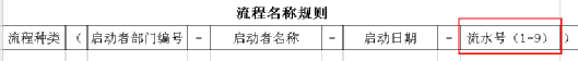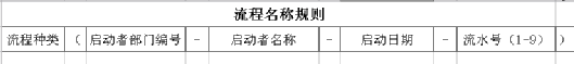 此名称规则的意义为,若技术部(部门编号为02)的员工,张飞,在2012年12月4日启动了一个“文件派发流程”,则该流程的名称为:“文件派发流程(02-张飞-121204-1)”。 |