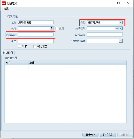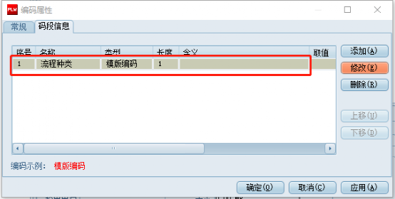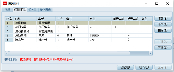 根据具体的编码规则创建码段,例如下图的“流程名称规则”: