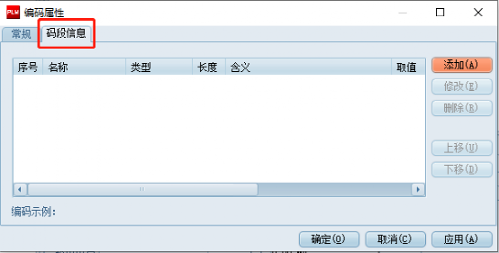 把所有码段创建出来之后,可以在“编码属性”窗体看到编码的示例,确认无误后,点击【确定】完成编码器的创建:
