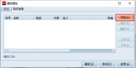 在弹出的“编码属性”窗体中的“常规”标签下输入“编码名称”: