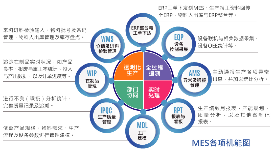 将原本ERP生产管理机能中的计画信息,系统准确下达到作业现场,包括计画生产产品、规格、数量、预完日、配方、操作标准、质量标准,实时提供现场控制系统所需设备参数,并获得现场各项生产动态及异常讯息。