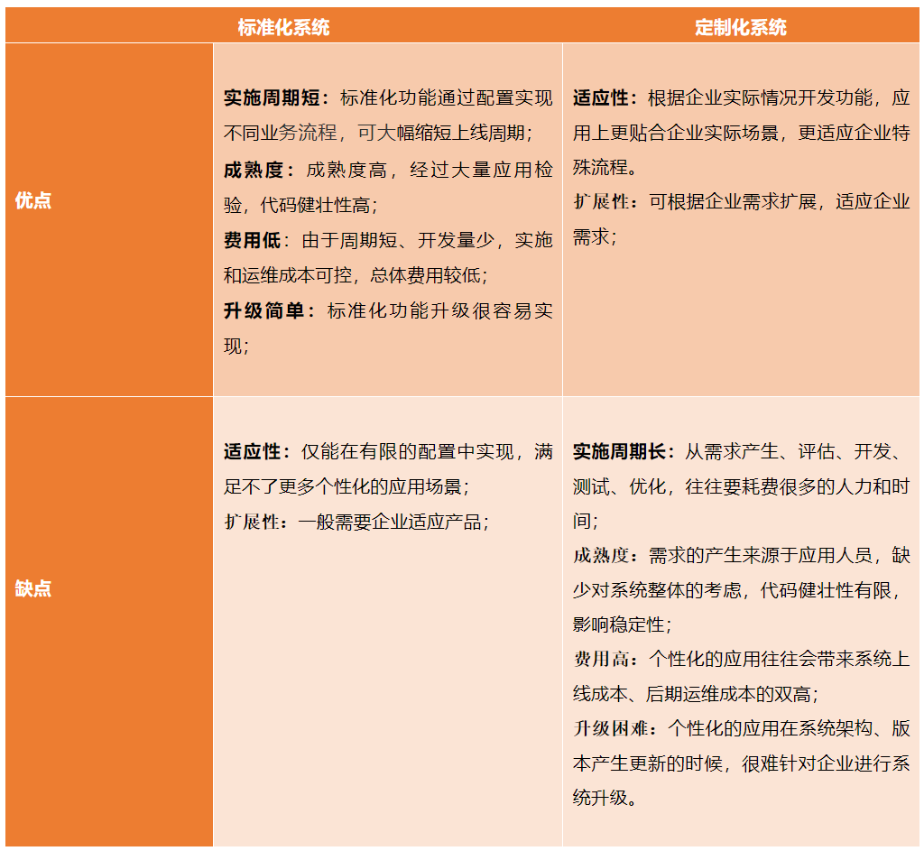 01:对于初创企业、中小型企业,规模较小、业务模式单一、应用和维护人员有限,一般信息化基础不强,使用标准化系统是一个更优的选择。