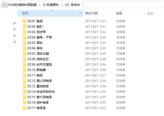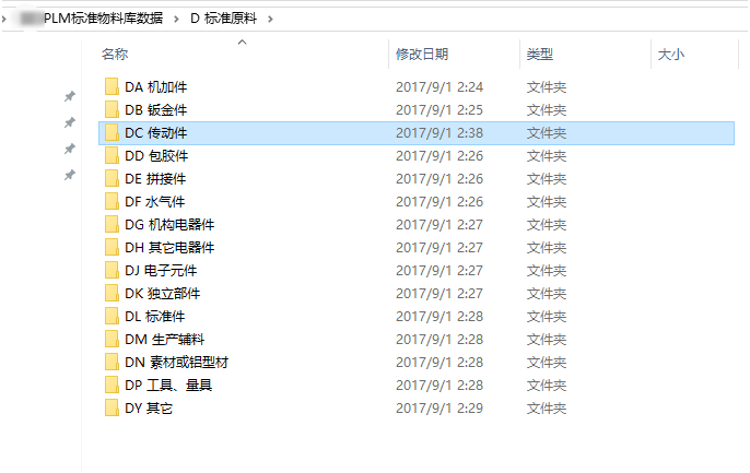 参考企业现有物料分类表(大类-中类-小类),在本地电脑建立物料分类文件夹,例如:广东A客户研发中心标准化小组按照品号(物料编码)DE开头的标准件、通用件分类建立相应各级分类文件夹。