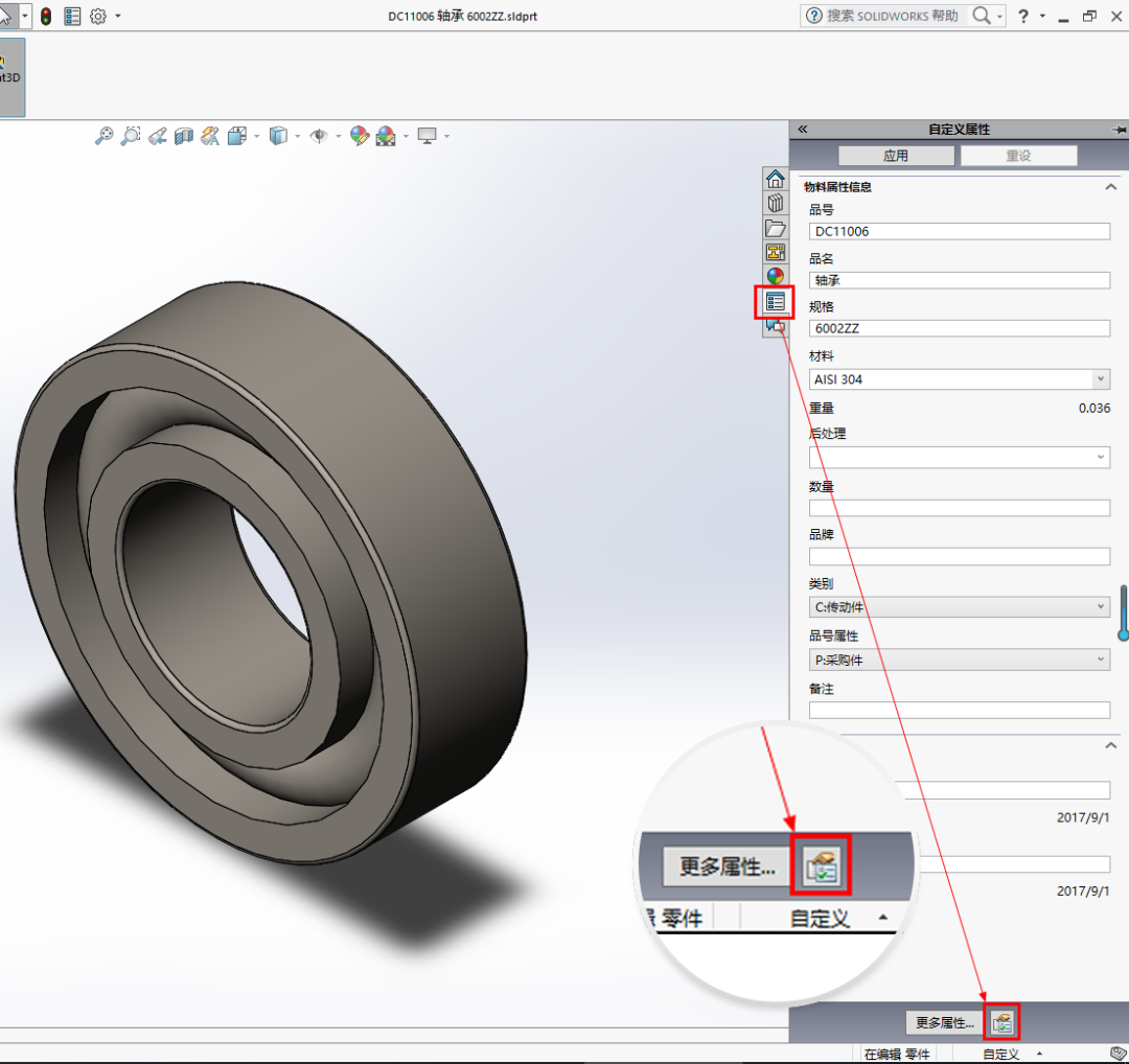 操作方法:通过调用SolidWorks软件界面右侧的自定义属性选项卡,先在下方选择对应物料大类的自定义属性选项卡,然后快速填写物料属性信息,之后点击上方的应用按钮,最后保存图纸。