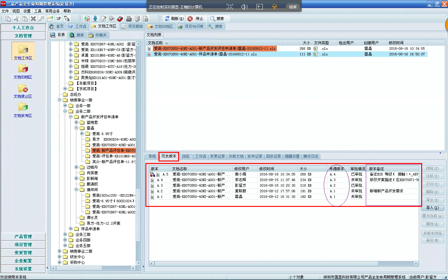 PLM系统有效管理所有图纸及各类项目文档资料,图档在修改及变更后会在系统中产生新的版本/版次,即升版,历史版本信息见下图: