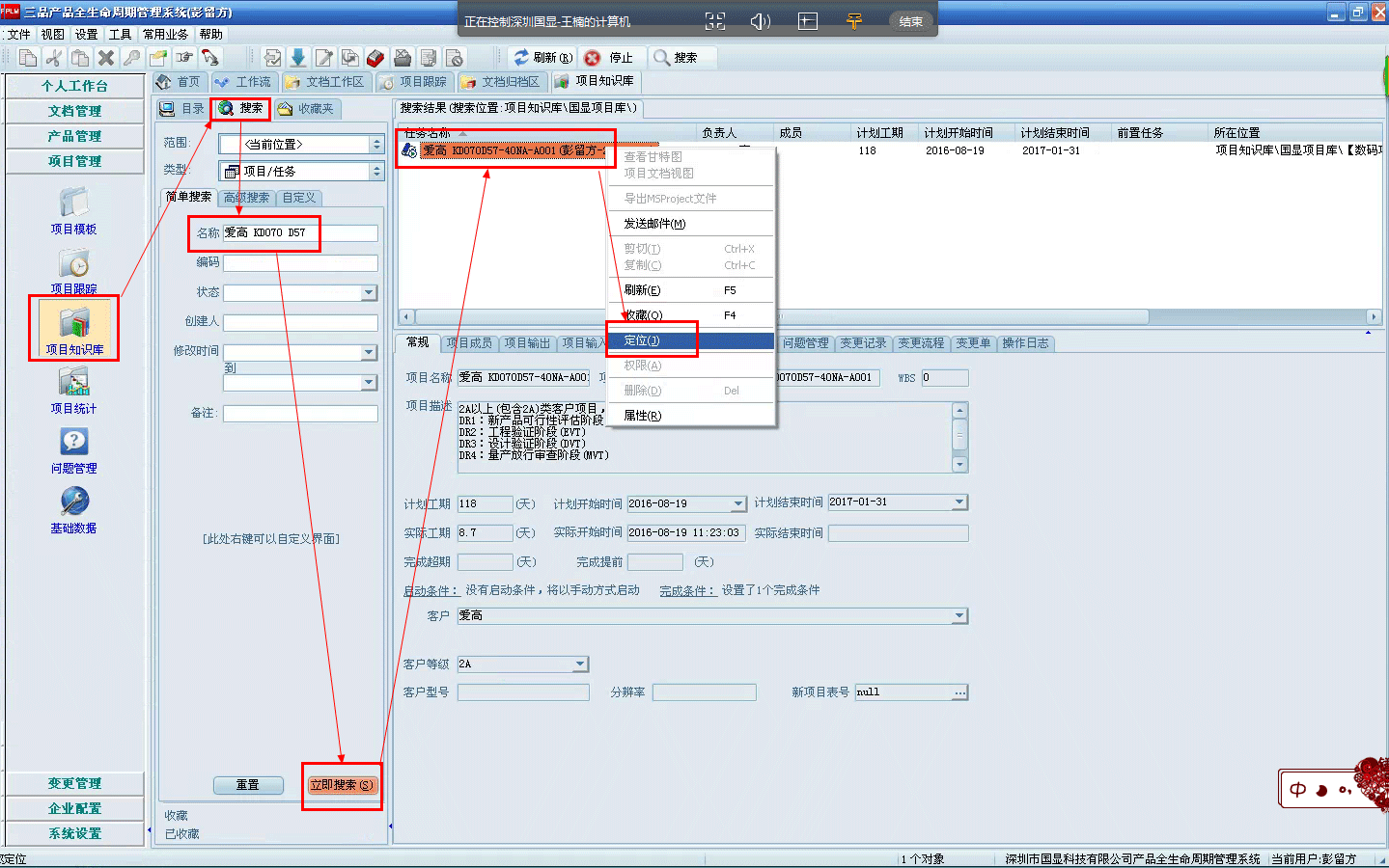目前,企业各用户可以按需要在PLM系统中快速查找历史项目及项目文档资料,快速借用,业务效率大大提高。