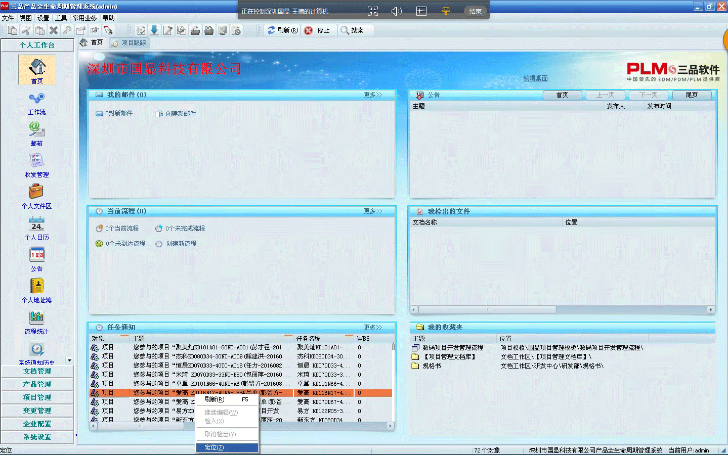 通过PLM系统协助国显科技建立统一的图文档资料协同管理平台,搭建了各部门文件夹目录框架,各部门规范各类文档资料,实现图文档数据集中、规范管理,也方便查找与使用。