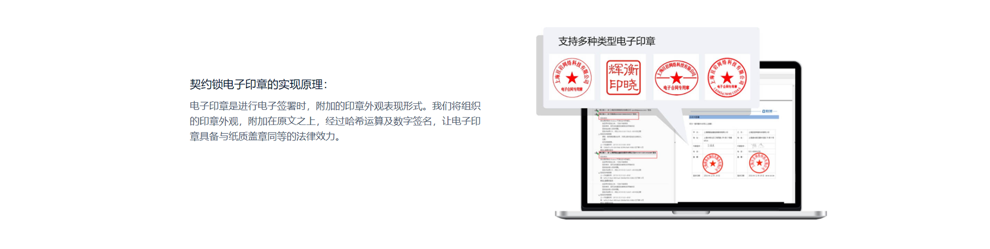 电子签为组织定义制作受国家法律保护的电子印章,并为这些印章匹配合法有效的电子签名