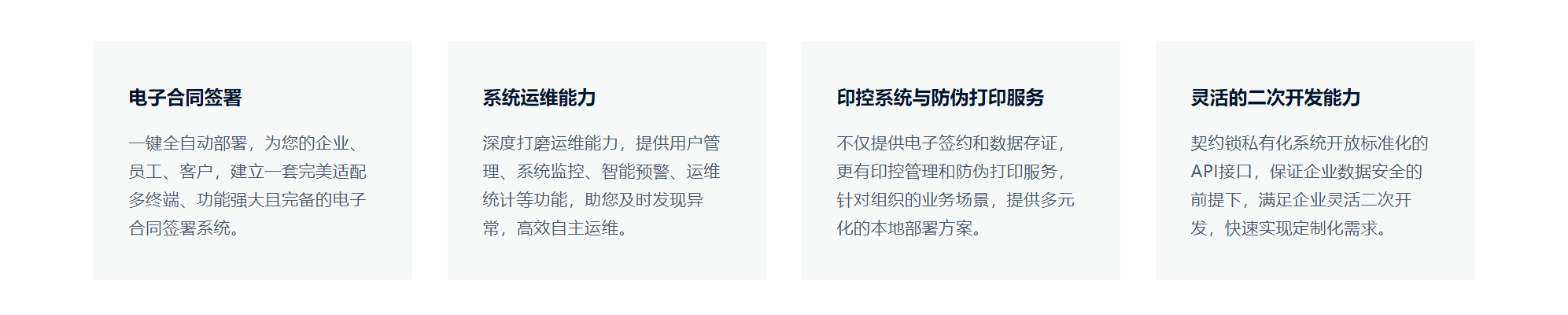 为组织提供可私有化部署的电子签章系统,通过接口与企业的OA、HRM、CRM、SCM等系统集成,让现有管理系统具有电子签能力