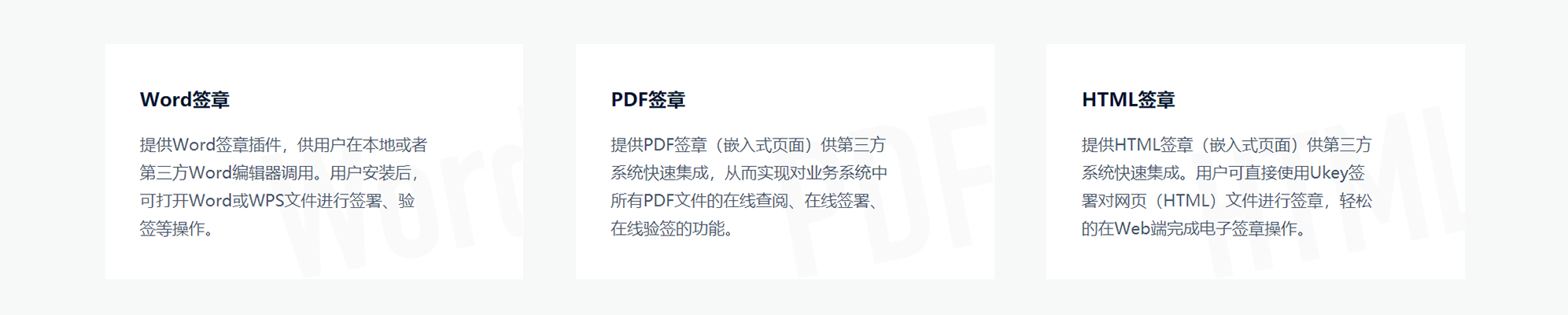 轻量化 · PC+移动签章 · 随时随地签署 ·快速集成 ·Word、PDF、HTML签章